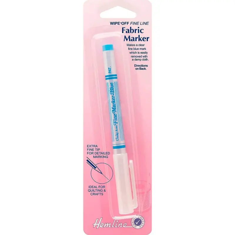 Il Marcatore Temporaneo a Punta Fine Blu di Hemline è progettato per marcare i tessuti in modo preciso e dettagliato grazie alla sua punta extra fine blu.
