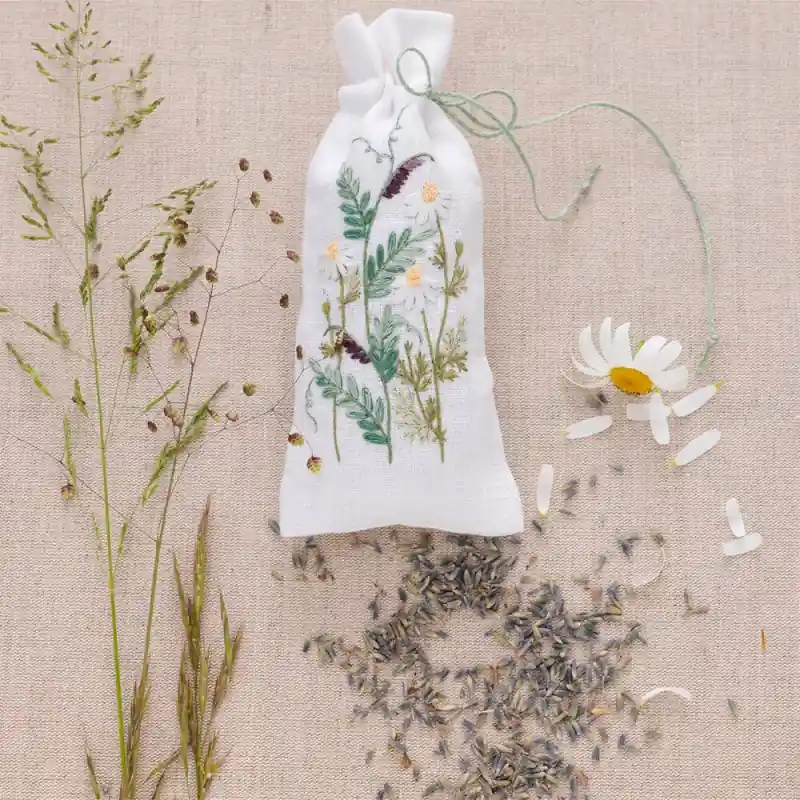 All’interno di questo kit completo troverai tutto il necessario per realizzare il progetto di ricamo, incluso tessuto da ricamo composto da 51% lino e 49% cotone, fili da ricamo in lino di alta qualità, un ago e istruzioni dettagliate per guidarti passo-passo nella creazione di questa deliziosa borsa aromatica.