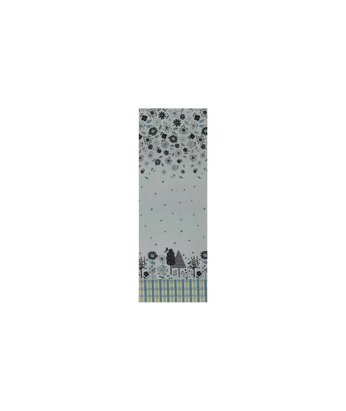 - Tessuto Fondo Grigio con Fiori, Soffioni, Alberi e Uccelli Neri