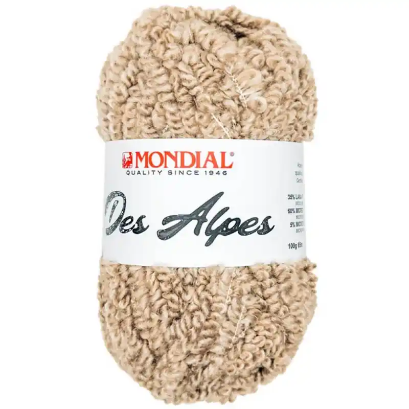 Mondial Des Alpes è un filato accogliente e moderno che si distingue per la sua texture arricciata tipo bouclé, morbida e spumosa, ispirata alla tendenza teddy di effetto peluche. La sua costruzione unica crea un volume leggero ma caldo, ideale per realizzare capi avvolgenti e accessori confortevoli.
