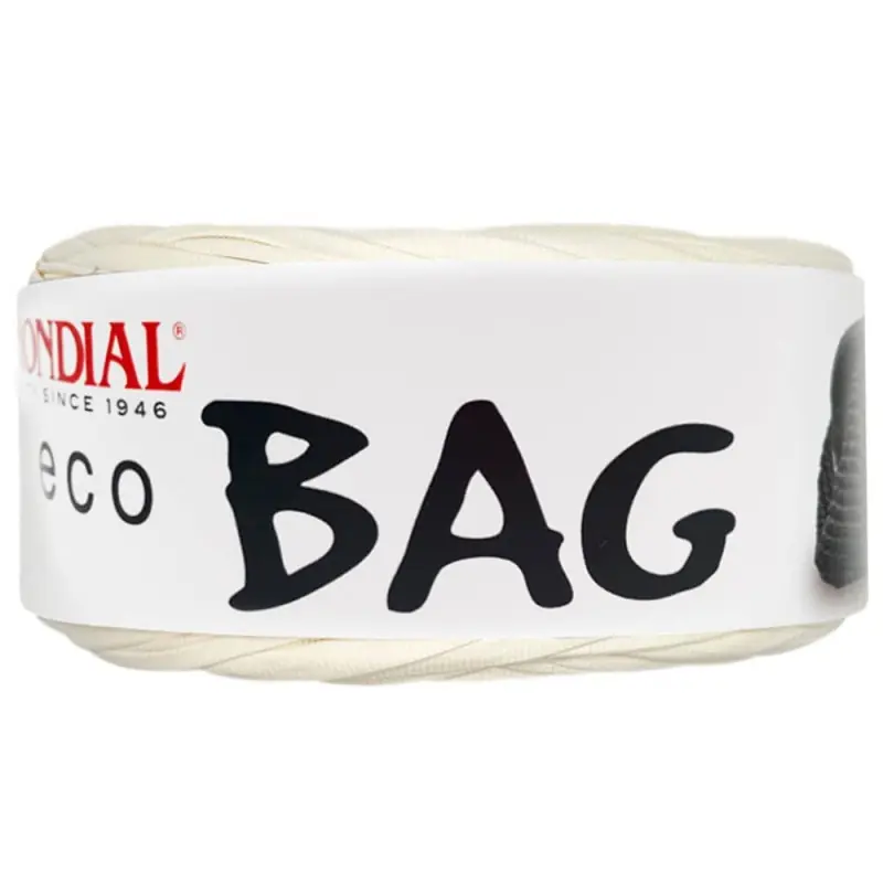 Mondial Eco Bag è un nastro sintetico con effetto pelle, realizzato in microfibra di poliestere resistente e corposa, ideale per lavorare all’uncinetto borse, portafogli, cestini e altro, ottenendo un risultato simile alla pelle.