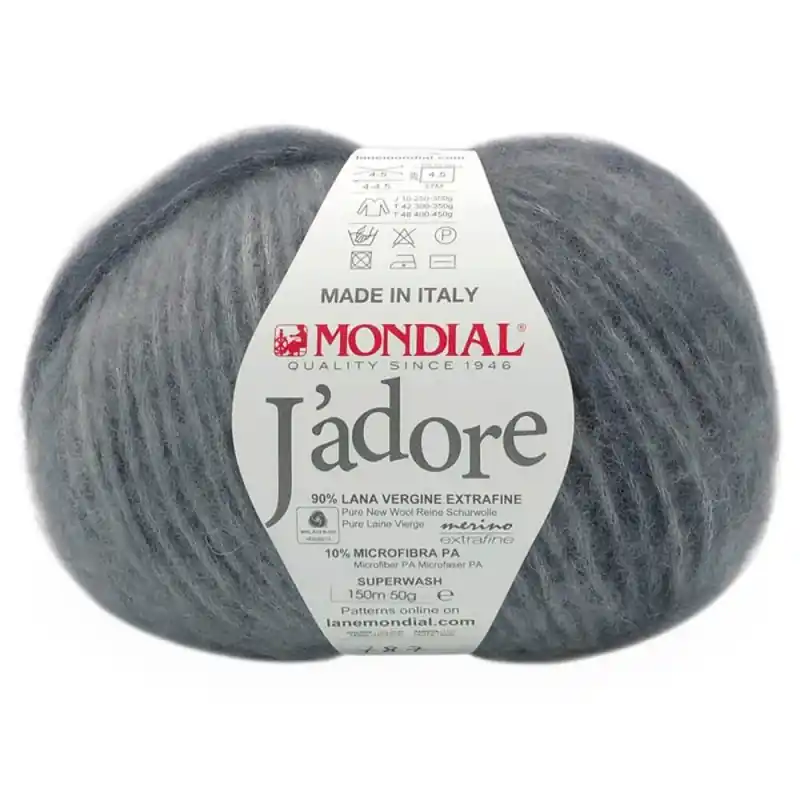 Mondial J’adore è un filato straordinariamente leggero composto da lana vergine merino Superwash. Un filato soffiato leggerissimo e dolce che si presenta con una cartella contenuta di colori stampati soffusi, pastello e vivaci. Una goduria per gli occhi e per le mani!