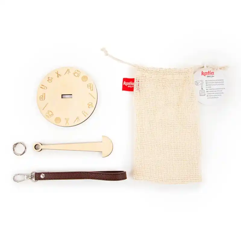 Porta il tuo lavoro ovunque con il portagomitoli in legno di Katia, un accessorio pratico ed elegante pensato per chi ama lavorare a maglia e all’uncinetto senza limiti. Realizzato in legno naturale inciso con un design esclusivo del marchio, permette di appendere il gomitolo al polso per lavorare comodamente mentre ti muovi, anche camminando.