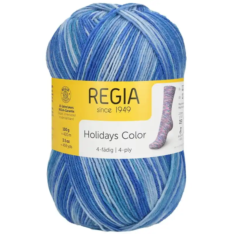 Regia Holidays Color – 4-ply è un filo speciale per tessere calzini .Questa gamma è appositamente disegnata per le vacanze estive,sebbene in base alla zona in cui vivi sarà più consigliabile utilizzarla in inverno.