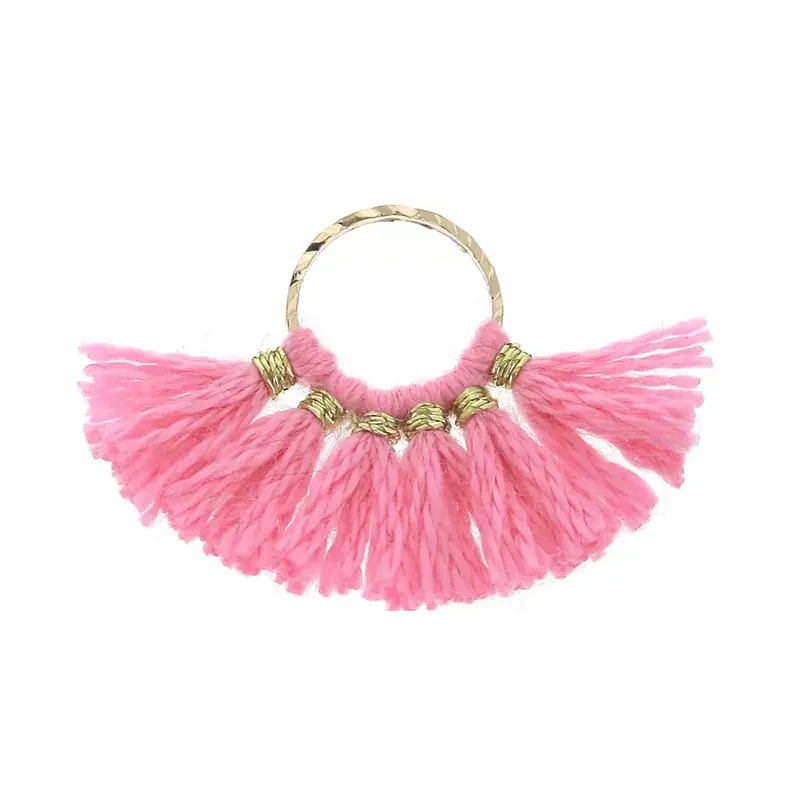 Non Perdere Mini pendentif éventail pompons imitation coton 15×20 mm Rose Vif – Doré x1