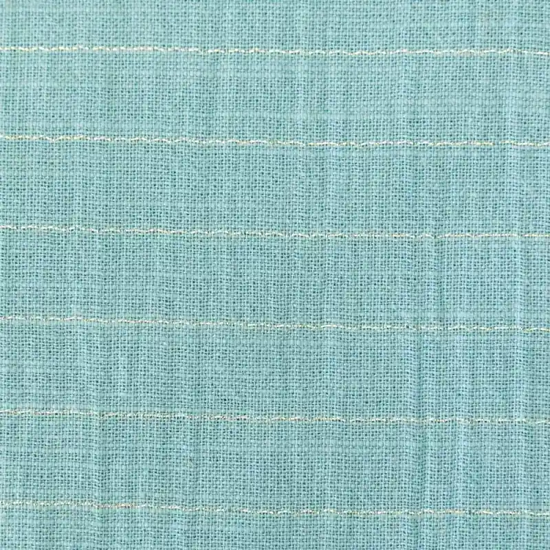 Il Tessuto Sari Gold Color di Katia Fabrics è un tessuto di cotone con una nota di poliestere metallizzato che dona un leggero tocco lucente. Questo filo brillante insieme all’effetto stropicciato vanno a creare un tessuto dalla finitura spettacolare.