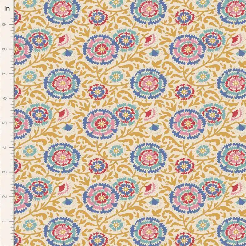 Non Perdere Tilda Jubilee Elodie Mustard, tessuto giallo mostarda con fiori