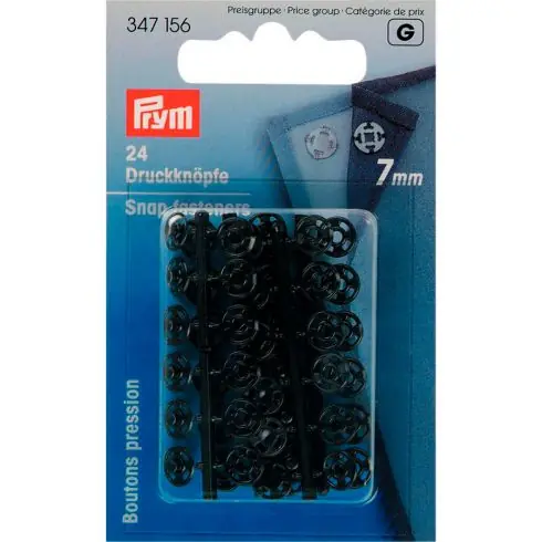 24 bottoni a pressione rotondi da 7 mm in plastica nera.