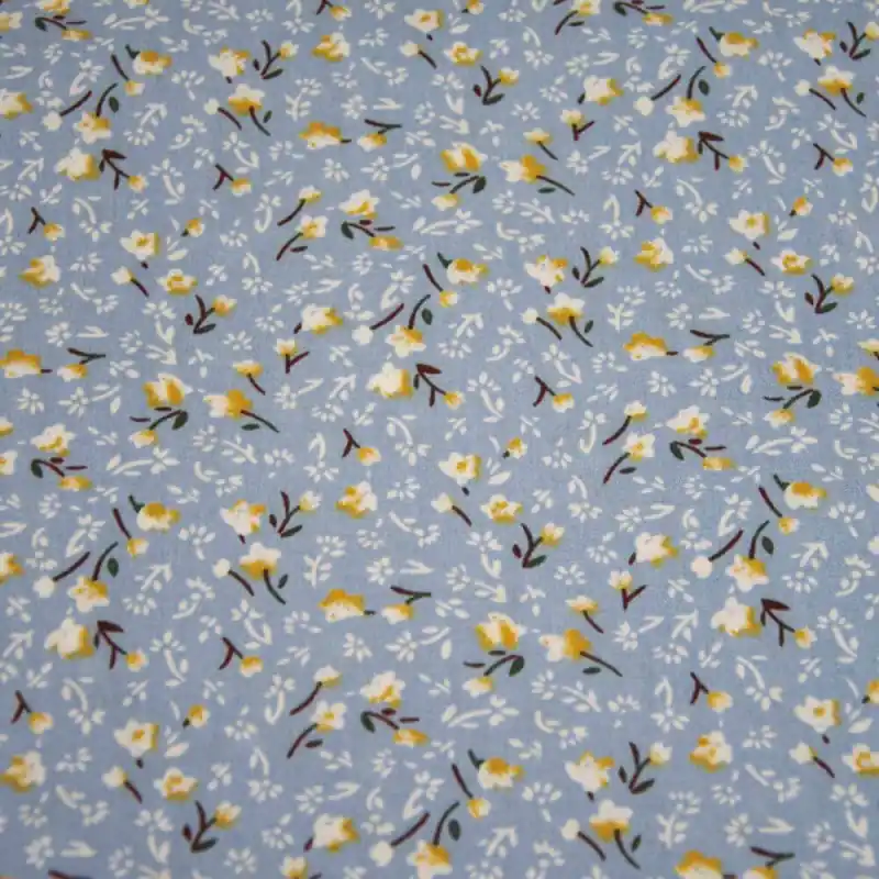 La stampa floreale su fondo azzurro crea un disegno tenero e delicato, rendendo questo tessuto l’opzione ideale per creare capi sia per adulti che per bambini. Dagli abiti alle camicie, questo tessuto versatile ti consente di dare vita alle tue idee con stile e comfort.