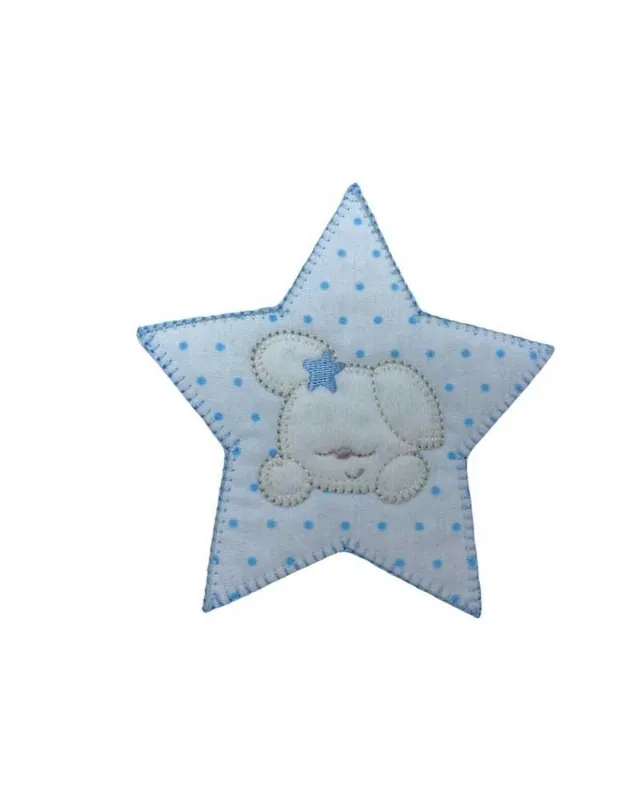 Occasione Applicazione Termoadesiva Patch Ricamo Stella Baby Cane Tessuto Pois Base Bianco 11 Cm