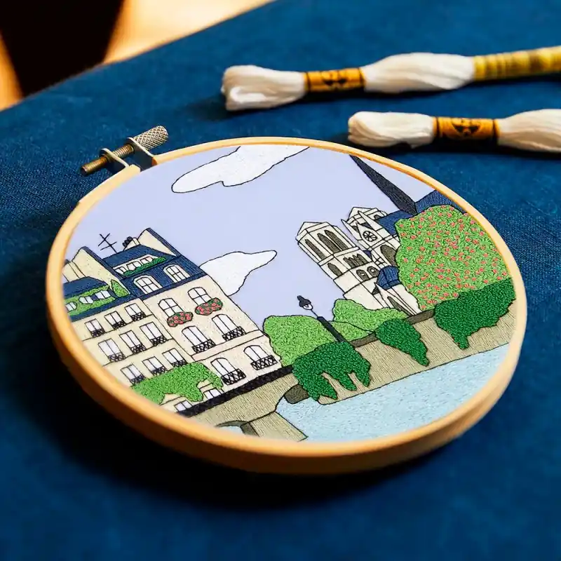 Il Kit per RicamoParigi di DMC, creato da Kseniia Guseva, invita a ricreare una delicata scena parigina piena di fascino ed eleganza. Edifici classici, aree verdi e la serenità del paesaggio urbano evocano il romanticismo tipico della capitale francese, trasformando questo ricamo in un pezzo decorativo senza tempo.