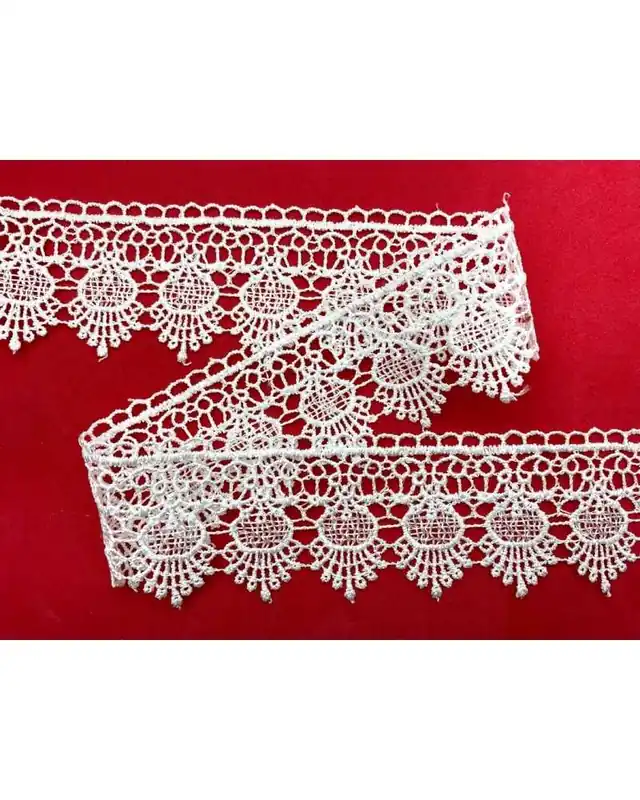 Questo merletto macramè è perfetto per rifinire capi d’abbigliamento e accessori con un tocco elegante e artigianale. Il motivo a punta triangolo dona movimento e raffinatezza, mentre la struttura in poliestere garantisce resistenza e facilità di cucitura.