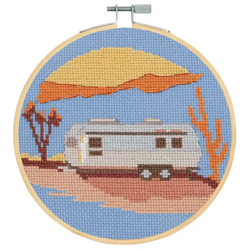 Immergiti in una fuga creativa con il Kit Punto Croce – Area di Riposo – DMC, un gioiello della collezione “Il Sogno Americano” di DMC. Questo incantevole kit ti trasporta nella tranquillità di un camper sulla spiaggia, catturando l’essenza del relax e dell’avventura.