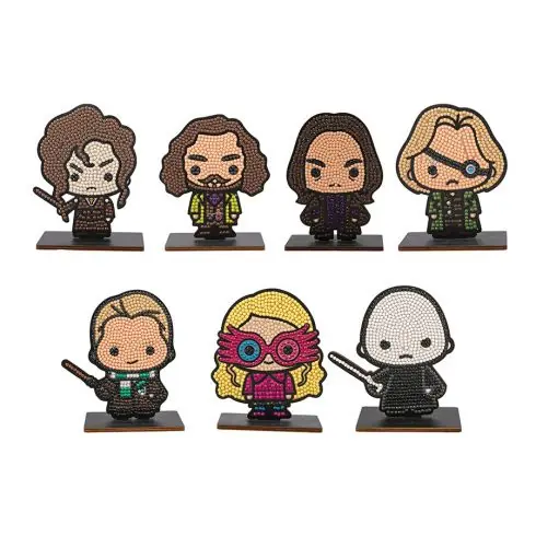 La confezione contiene 7 set di figurine tagliate a diamante con i personaggi principali della saga: Luna Lovegood, Drago Malfoy, Alastor Maugrey, Severus Piton, Sirius Black, Voldemort e Bellatrix Lestrange.
