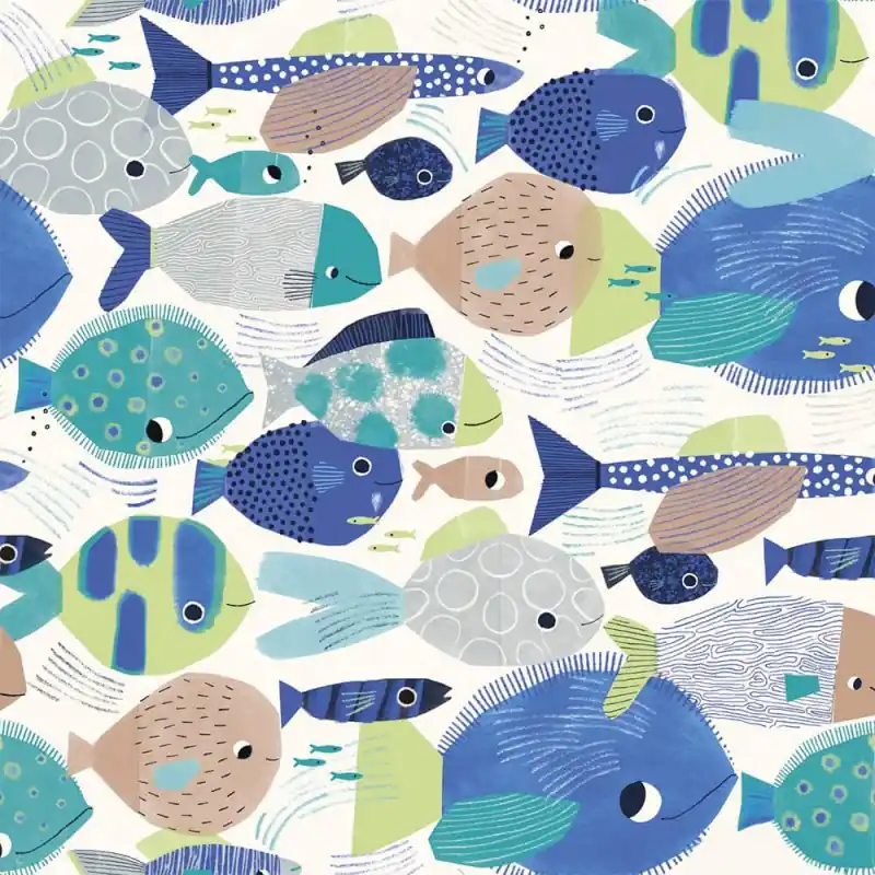 Il Tessuto Jersey Katia – Tropical Deep Sea è un tessuto in maglia jersey con una bella stampa di pesci su sfondo bianco. Questo tessuto, composto principalmente da cotone con il 5 % di elastam, offre la perfetta combinazione di elasticità e comfort per realizzare capi elastici e comodi per tutta la famiglia.