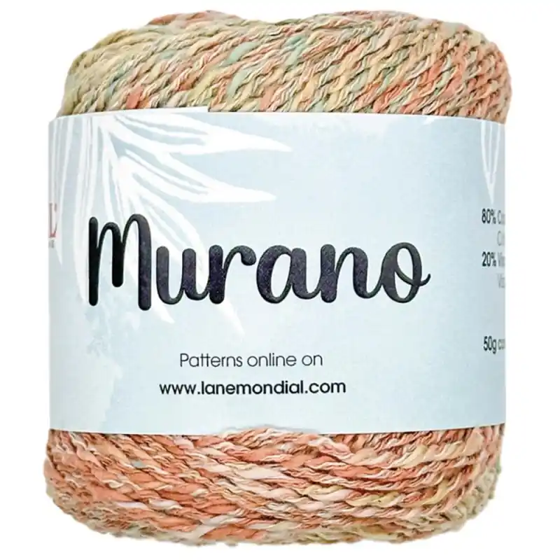 Il suo design con stampe marmorizzate multicolor conferisce una texture unica e vibrante a qualsiasi progetto. Leggero e facile da lavorare, Murano è perfetto per creare indumenti estivi come canotte, top, vestiti e persino cardigan, con tecniche semplici che permettono al filato di essere il vero protagonista delle tue creazioni.