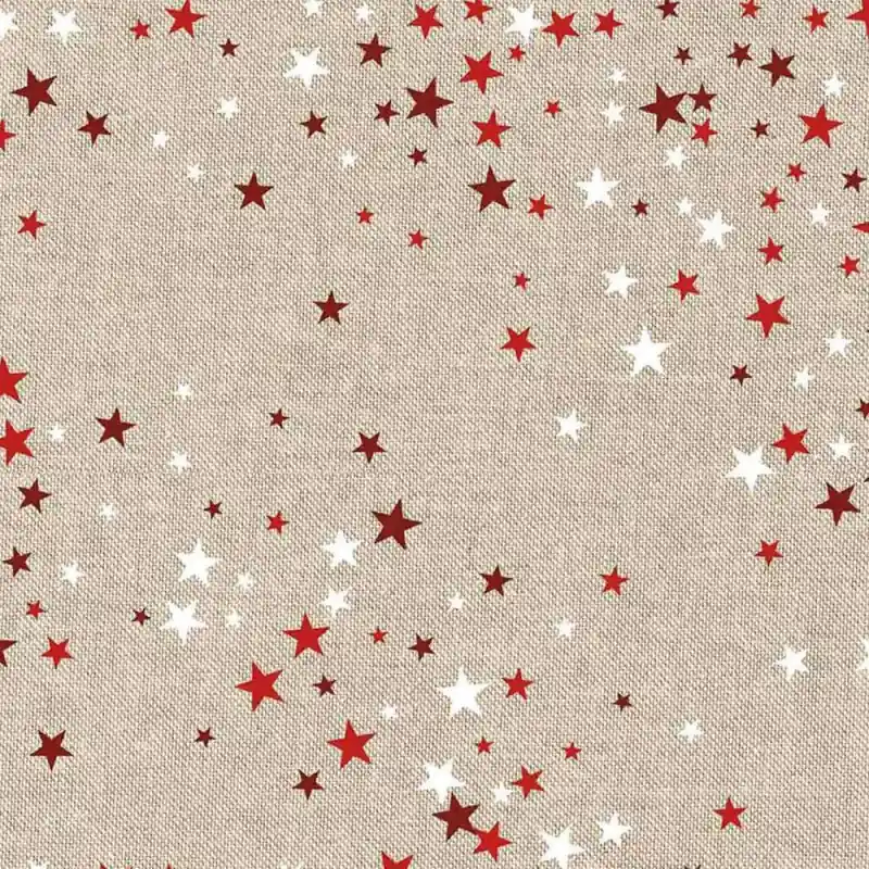 Il Tessuto Recycled Canvas Katia – Xmas Dreams è una tela riciclata che presenta un’incantevole stampa con piccole stelle nei toni del rosso, marrone e bianco su uno sfondo sabbia. Questo tessuto di alta qualità e molto resistente ha un aspetto naturale che lo rende perfetto per creare una spettacolare tovaglia natalizia, così come altri elementi decorativi per il periodo natalizio.