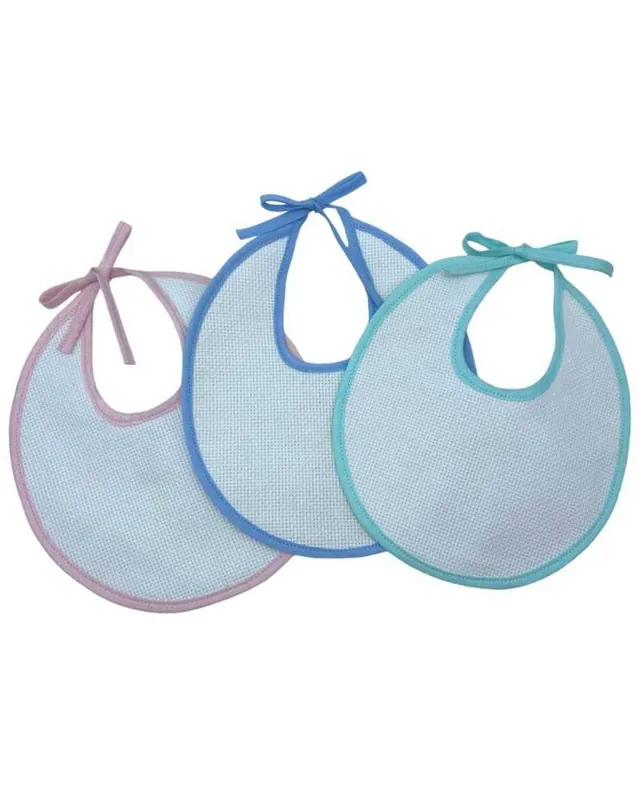 Bavaglino Tondo Ricamo Tela Aida Bianca Bavetta Foderata Flanella Cotone Bio Sbieco Cm 17×19
