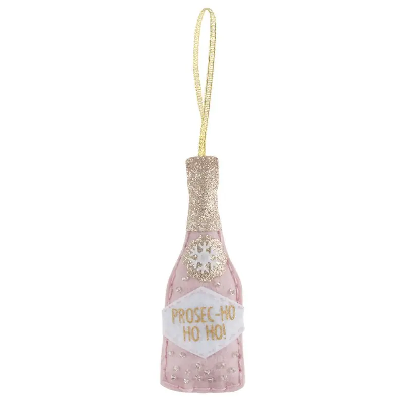 Questa bottiglia di colore rosa e dorato contiene un fiocco di neve bianco e la scritta “Prosec-ho-ho-ho”, come dice Babbo Natale.
