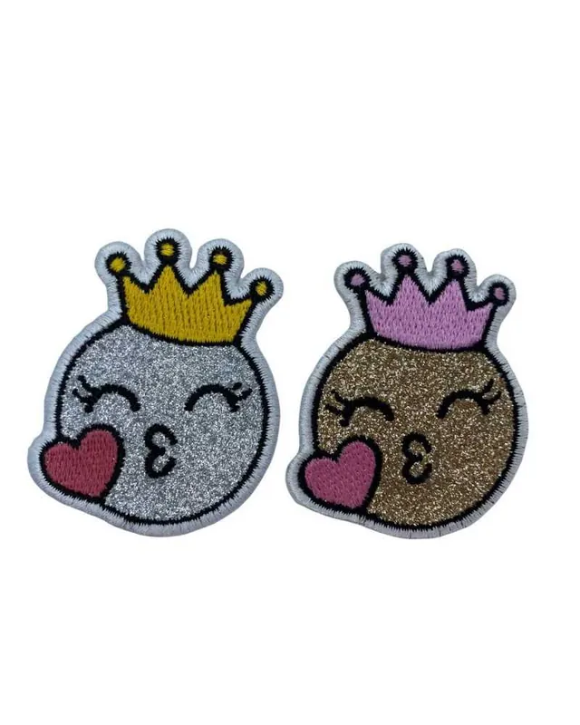 Offerta Limitata Applicazione Toppa Patch Termoadesiva Baby Ricamo Smile Tonda Corona Cuore Glitter 55×45 Mm