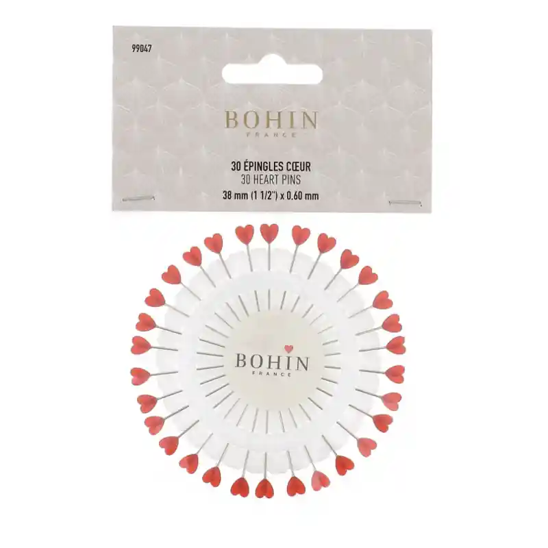 Offerta Limitata Bohin, Spilli con testa in plastica a forma di Cuore rosso per Patchwork e Quilting da 38 x 0,60 mm – Ruota da 30 spilli