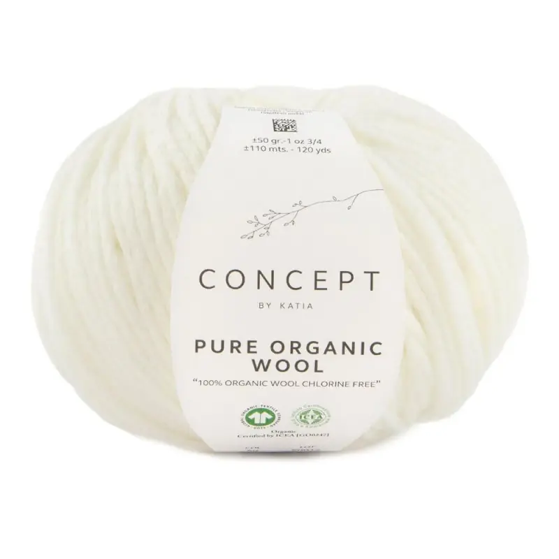 Katia Pure Organic Wool è un puro lana della collezione Concept by Katia, soffice e dolce, con un aspetto avvolgente ma molto leggera. Composta al 100% di lana vergine organica, con trattamento senza cloro (chlorine free) e certificata da GOTS.