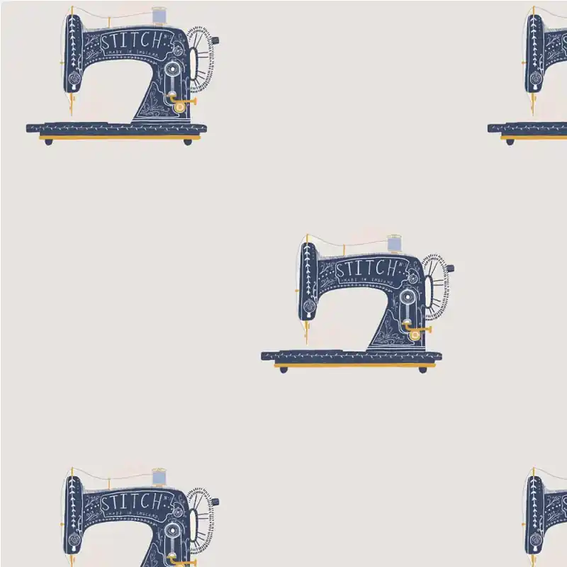 Dalla stampa di macchine da cucire su uno sfondo di tono crema, questo tessuto è perfetto per la creazione di borse portalavoro, borse per la macchina da cucire o tagliacuci, borse portatutto e altri accessori per organizzare i tuoi materiali di cucito.