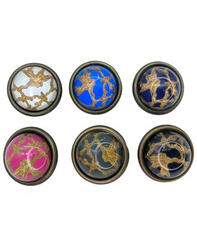 Bottone Tondo Bombato Inserti Oro Base Metallo Brunito Gambo Mis. 27 Mm