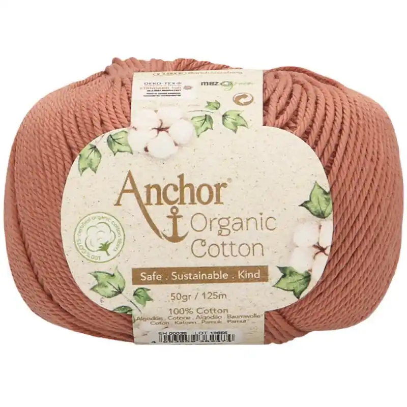 Organic Cotton di Anchor è un filato perfetto per le maglieriste e appassionate dell’uncinetto che vogliono contribuire alla salvaguardia del pianeta. Il filato presenta la certificazione GOTS che garantisce fibre ottenute in modo sostenibile e biologico senza utilizzare alcun componente chimico nella sua produzione. Offre anche la certificazione OEKO-TEX.