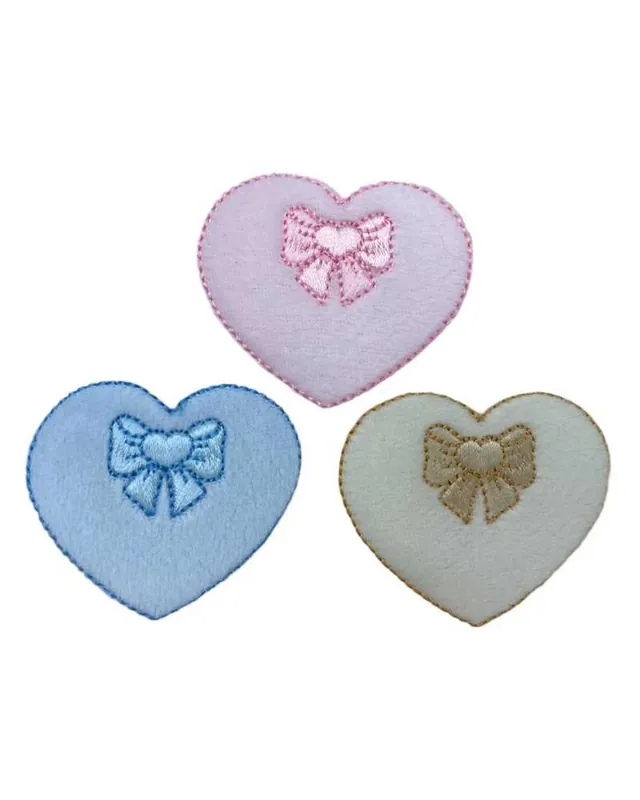 Applicazione Termoadesiva Patch Marbet Ricamo Fiocco Baby Velluto Cuore 5×4 cm