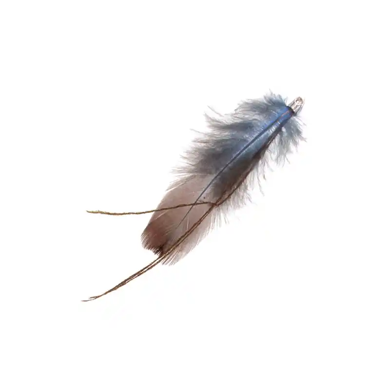 Plume de dinde et de paon montée sur un embout rhodié 6x4mm.