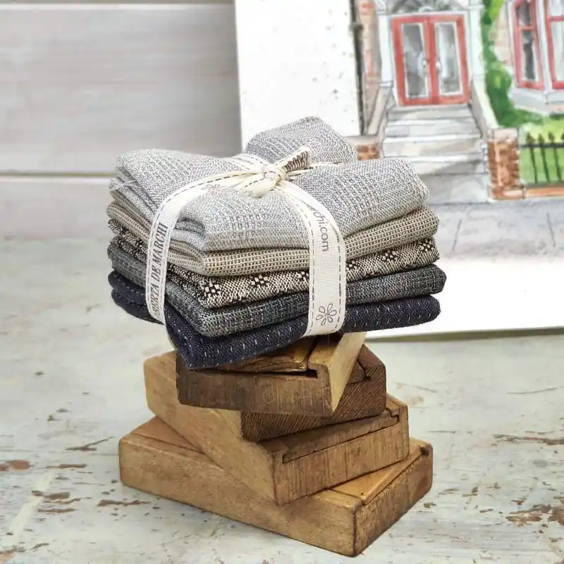 Pacchettino di Roberta composto da 5 tessuti giapponesi tinti in filo 100% cotone di alta qualità