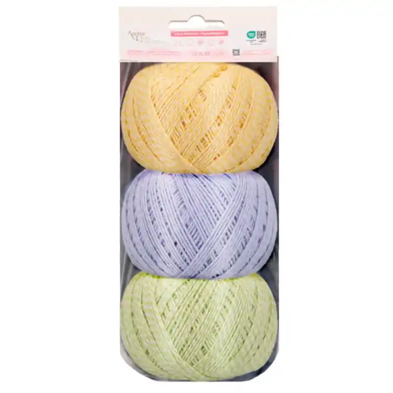 Il Pack da 3 Gomitoli Anchor Baby Pure Cotton Multicolor comprende tre matassine di filato di puro cotone, ideali per realizzare capi di abbigliamento e accessori per neonati. Ogni gomitolo contiene 50 grammi di filato e la confezione include anche un modello per realizzare una borsa all’uncinetto.