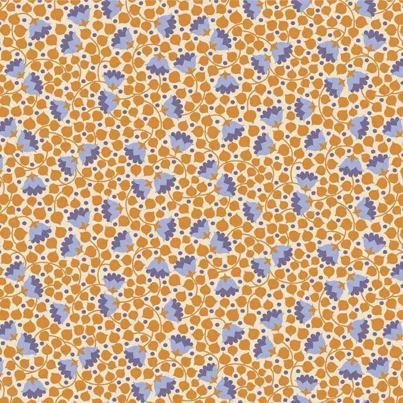 Pagamento Sicuro Tilda Wallflower Bellflower Mustard, Tessuto Giallo Mostarda Campanule
