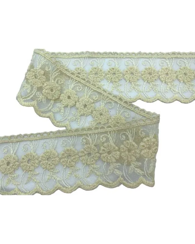 Passamaneria Pizzo Tulle Ricamo Fiore Cotone Panna Perla Alto 8 Cm Compra Adesso
