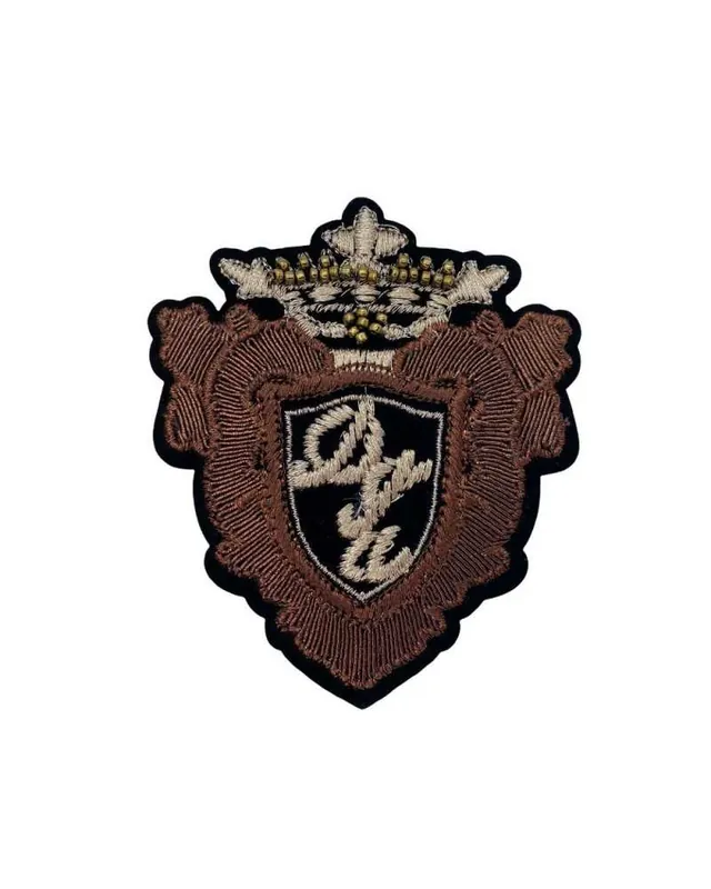 Patch Termoadesiva Scudetto Ricamato Perline Bronzo Filo Metallizzato 85×95 Mm Spedizione Espresso