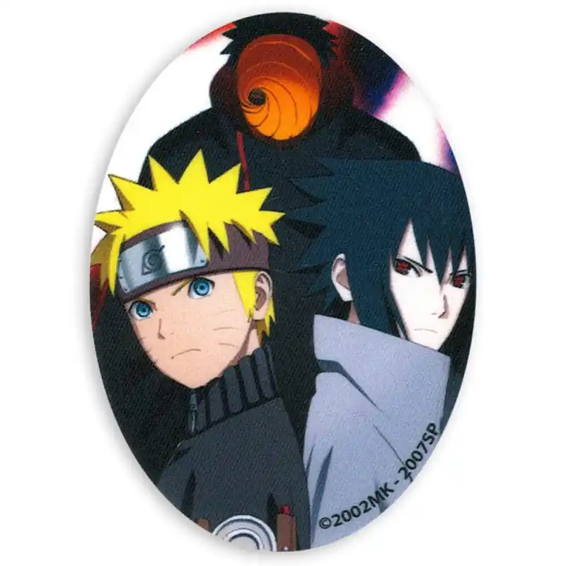 La Toppa Termoadesiva Ovale Naruto vs Sasuke Rivali cattura l’essenza dello scontro eterno tra due ninja destinati a percorsi opposti: Naruto Uzumaki, con il suo spirito indomabile e speranza, di fronte a Sasuke Uchiha, segnato dalla vendetta e dall’oscurità. Lo sfondo scuro e la figura misteriosa che li accompagna intensificano ulteriormente l’atmosfera del design, trasmettendo tutta la carica drammatica di questa relazione.