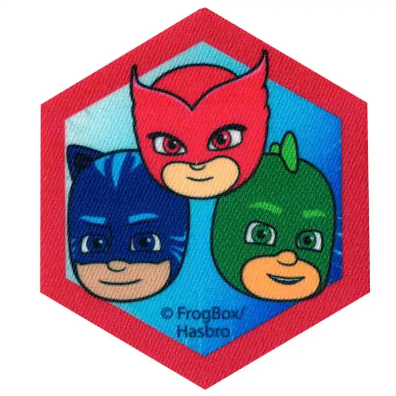 La Toppa Termoadesiva PJ Masks Trio di Eroi è perfetta per aggiungere un tocco originale e pieno di energia ai vestiti e agli accessori dei più piccoli. Con un design esagonale che riunisce i tre protagonisti della serie —Catboy, Owlette e Gekko— questa toppa non solo aggiunge colore e divertimento, ma è anche ideale per coprire l’usura dei capi o personalizzare zaini e giacche.