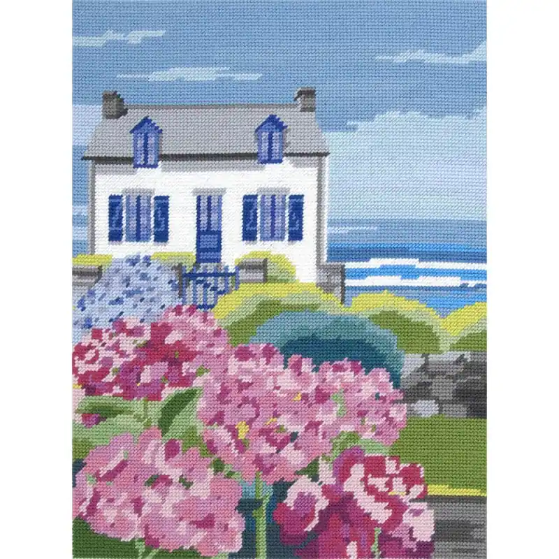 Misurando 30 cm x 40 cm, questa tela offre ampio spazio per dare vita alla tua creatività. Il disegno è prestampato sulla tela, il che facilita il processo di ricamo e garantisce un risultato preciso e dettagliato. Il disegno raffigura un’incantevole casa costiera della regione francese della Bretagna, evocando il fascino e la bellezza di questa zona pittoresca.