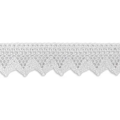 Pizzo 100% cotone, larghezza 2,1 cm, colore bianco, venduto al metro.