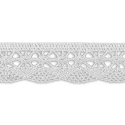 Pizzo 100% cotone, larghezza 2 cm, colore bianco, venduto al metro.