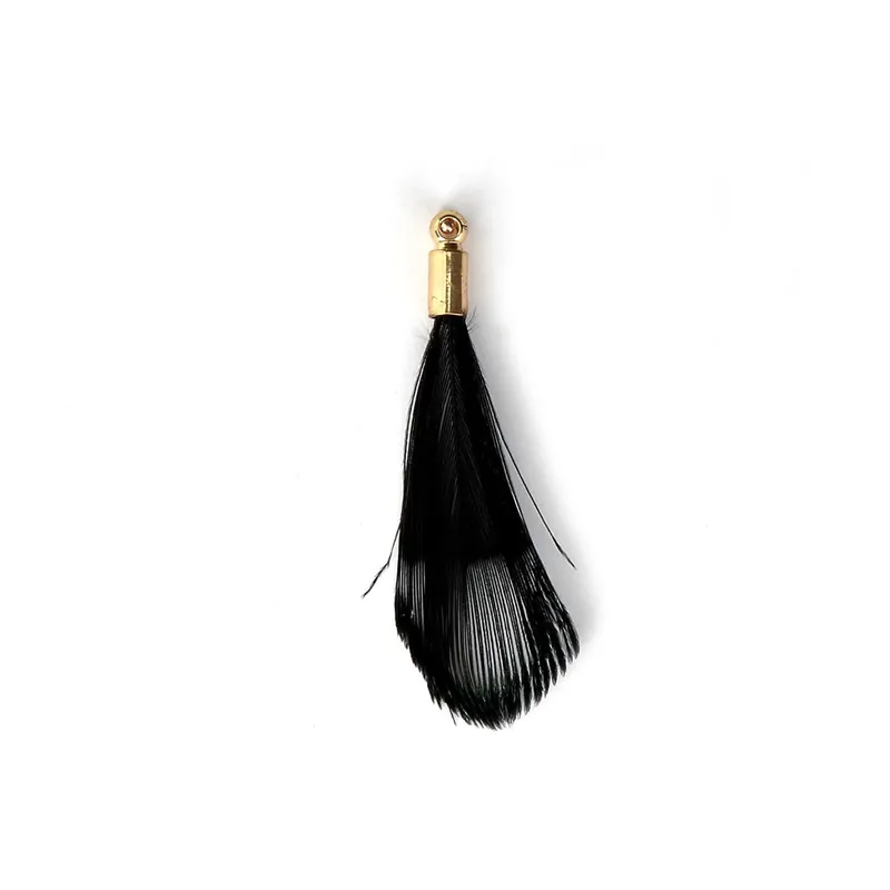 Plume de faisan rayée avec embout doré pour bijoux fantaisie Noir 25 mm x1 Economico