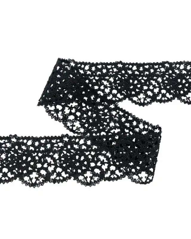 50 Cm Passamaneria Pizzo Merletto Cotone Traforato Nero Alto 5 Cm