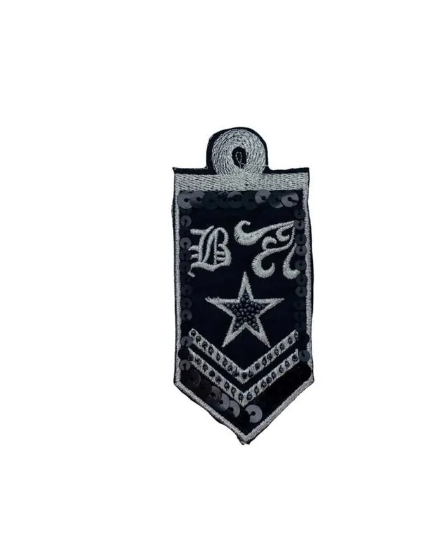 Applicazione Termoadesiva Patch Grado Militare Ricamo Filo Lurex Argento Paillettes Perline Cucite Cm 11×5