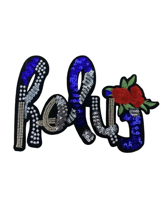 Applicazione Termoadesiva Ricamo Scritta Paillettes Patch 19×12 Cm