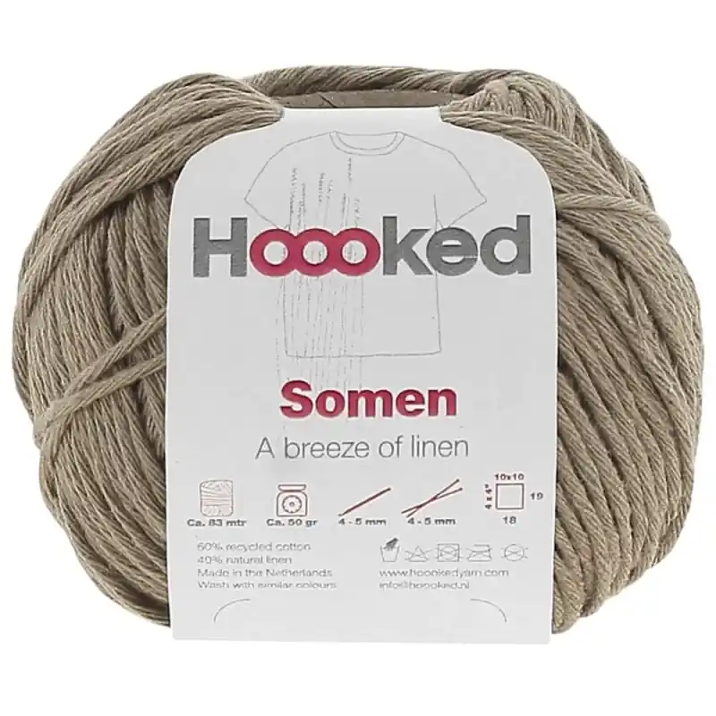 Hoooked Somen è un filato fresco realizzato con fibre vegetali di cotone e lino, perfetto per lavorare a maglia o all’uncinetto i tuoi capi più estivi. Il materiale è morbido ma resistente, quindi è ideale anche per fare accessori come cestini, fioriere e molto altro.