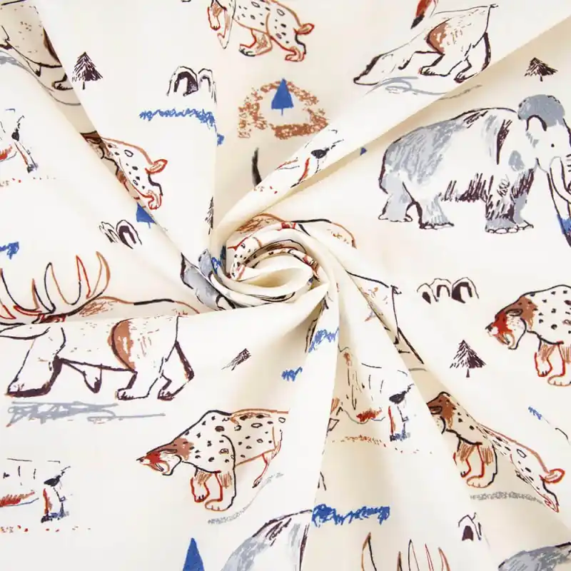 Il Tessuto Poplin Katia – Prehistoric Dance è un tessuto popeline di cotone, con una divertente stampa di animali preistorici in toni di blu, grigi e marroni su uno sfondo bianco. La sua morbidezza e qualità la rendono perfetta per realizzare abbigliamento e accessori per tutta la famiglia, come vestiti, bluse o anche accessori unici.