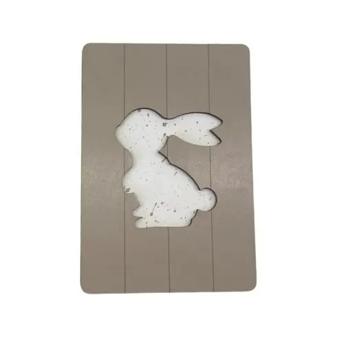 Scatola per aghi magnetici in legno marrone chiaro intagliato con motivo di coniglio.