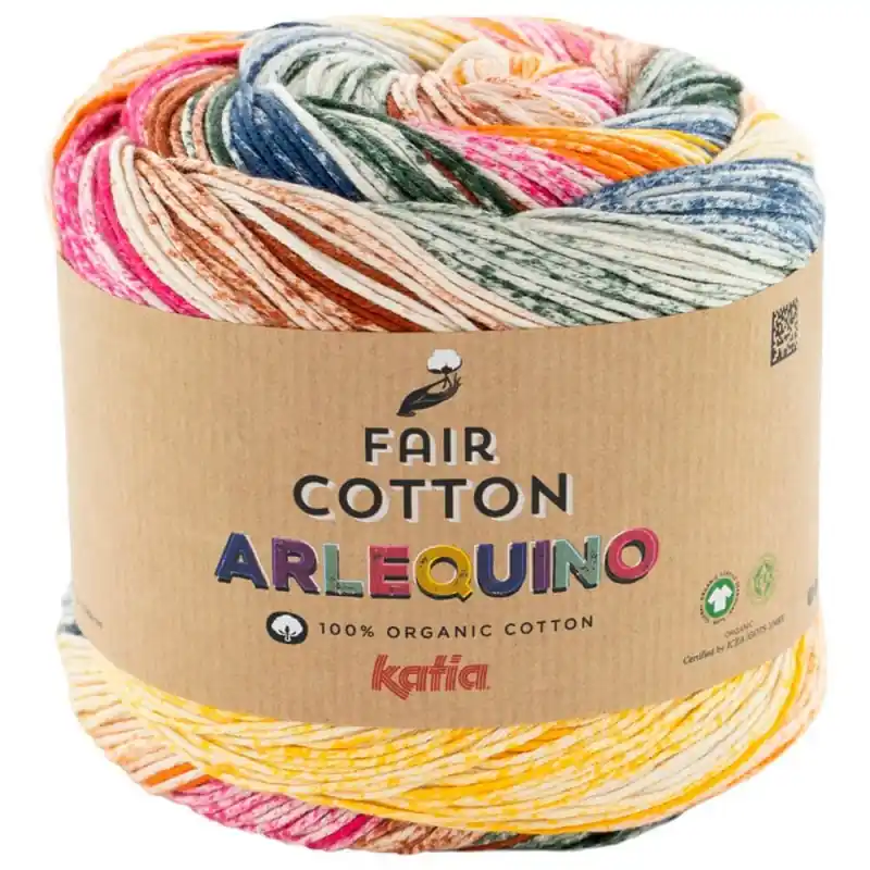 Grazie alla sua composizione naturale e alla sua finitura morbida, Fair Cotton Arlequino è ideale per capi freschi, colorati e confortevoli, sia per adulti che per bambini. Fa parte della famiglia Katia Fair Cotton, il che permette di abbinarlo facilmente con versioni tinta unita o altri stampati della stessa gamma, ampliando le possibilità creative. È un’opzione perfetta per coloro che cercano di godere della maglia in modo consapevole, puntando su materiali sostenibili e design pieni di vita.