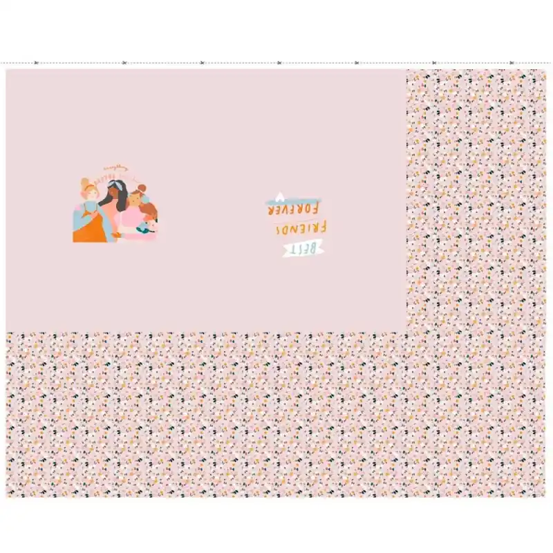 La stampa del capo di abbigliamento raffigura tre ragazze con la frase “Everything is better together” su uno sfondo rosa per la parte frontale dell’abito. Per la parte posteriore troverai la frase “Best Friends Forever” e per le maniche una divertente stampa a fiori.